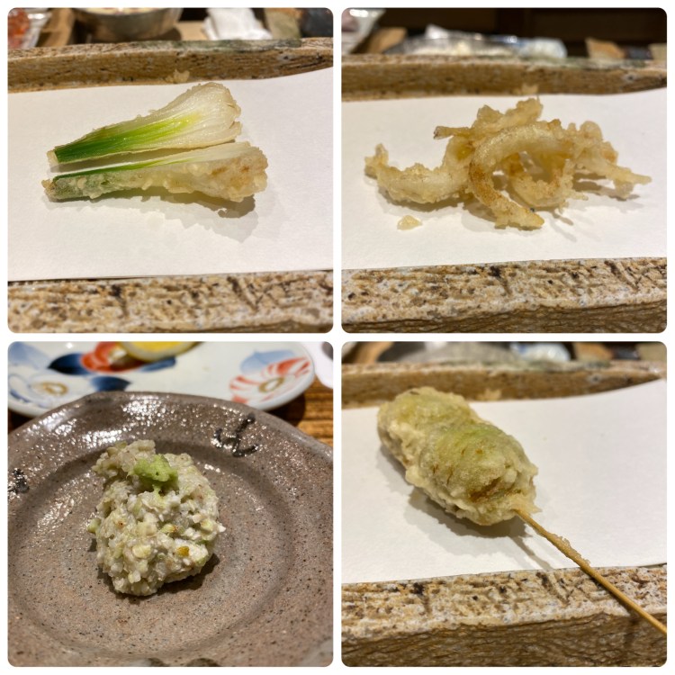↓左上の写真はオニオンヌーヴォーと呼ばれる葉玉ねぎらしい。 オニオンヌーヴォー!(笑) 甘くて好き! 白魚も美味しかった。