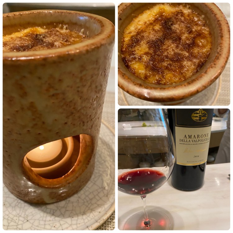 火で温められているから、エンドレスアツアツ。 北海道のワインラムだそう。ラム好きだから嬉しい。 ワインはアマローネ。 アマローネはイタリアのヴェネト州でブドウを陰干しして作る伝統的なワイン。 アマローネって甘そうな響きですが、イタリア語で苦味という意味のアマーロからきてるんですよね。 次はスペシャリテのブーケサラダ。 私は最近胃が疲れていたので、こういうメニュー嬉しい。