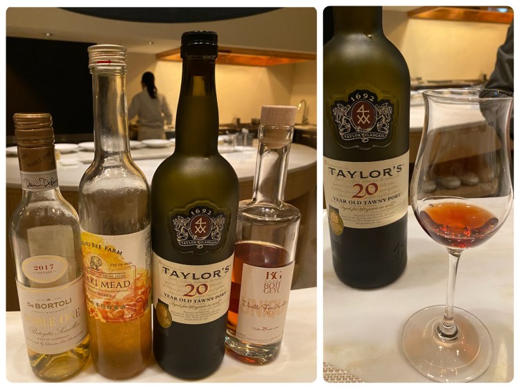 はちみつのお酒以外は、前回と種類も変わっていて楽しい。 私はトワニーポート。夫は貴腐ワインを選択。