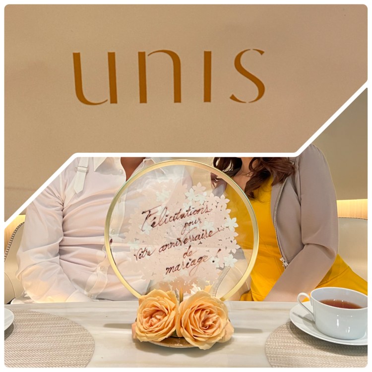 店名の「ユニ」は単体を意味するUni。 「調和」を意味するunisonと 複数のものをひとつにするunion 目に見えない「結束」を意味するunity たくさんの幸せが折り重なる場所という意味を込めて『unis』と名付けられているそうです。