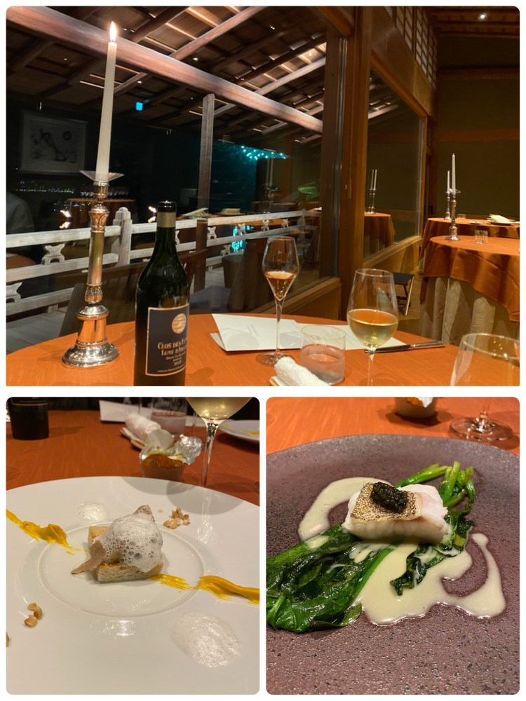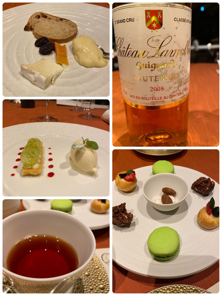 シャトー・レオヴィル・バルトン サンジュリアン村のレオヴィル三兄弟の1つ。 カシス、ブラックベリー、土。樽香。タンニンしっかり。酸まろやかで美味しかったです。 クロ・デ・リュンヌ リュヌ・ダルジャン ひらまつのペアリングでよく出るソーヴィニヨンブラン。 爽やかで食事に合わせやすい。 シャトー・ラモット・ギニャール チーズに合わせてソーテルヌの甘口ワインも出していただきました。 チーズはモンドールとシャウルスをいただきました。