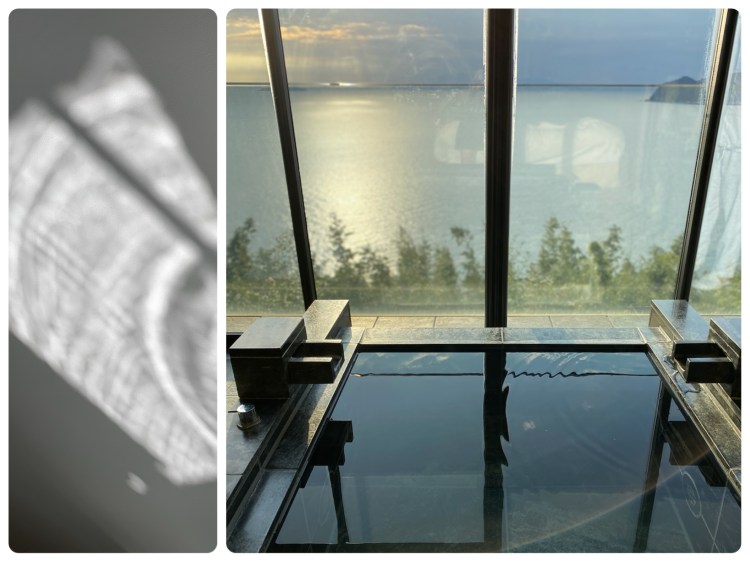 ひらまつのこのデザインオシャレですよね。 ベッド→温泉→外の景色と並ぶ感じが良いですよね。 大地真央さんのご主人の森田恭通さんがデザインされているそうです。 秋冬は乾燥するので、お湯が加湿効果にもなりますよね。 お風呂の部分とベッドの部分は扉で仕切ることも可能です。 2つ洗面台があるのが嬉しい。