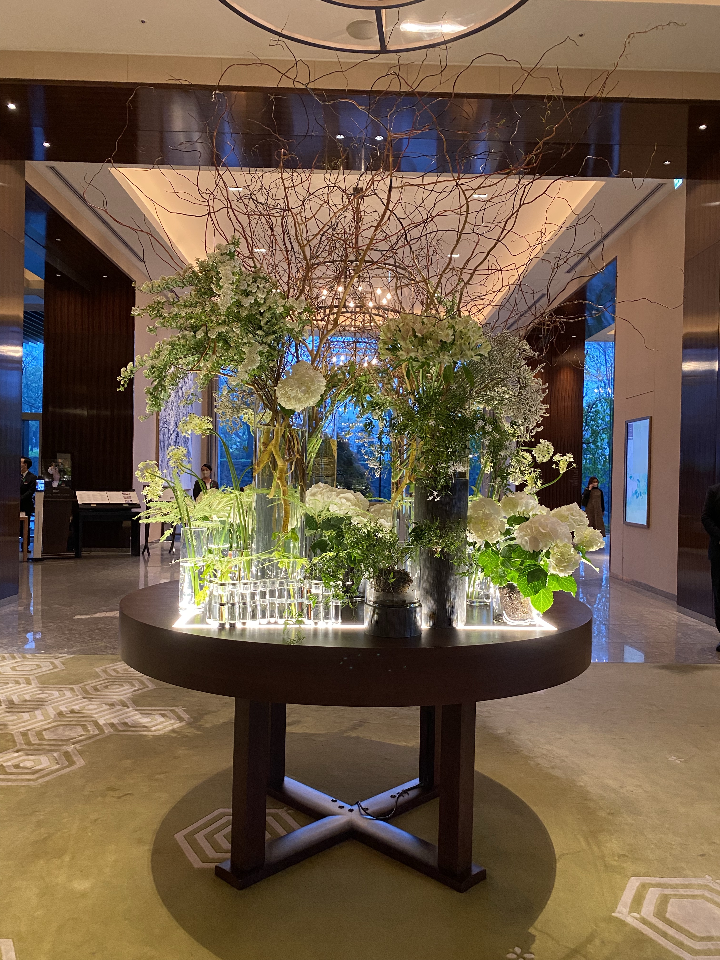 少し久しぶりのパレスホテル。 エントランスはグリーンとホワイトが主体で心が潤います。