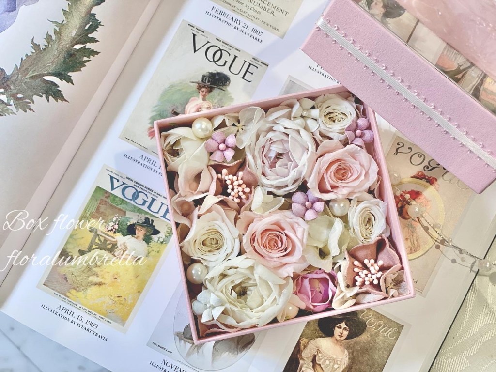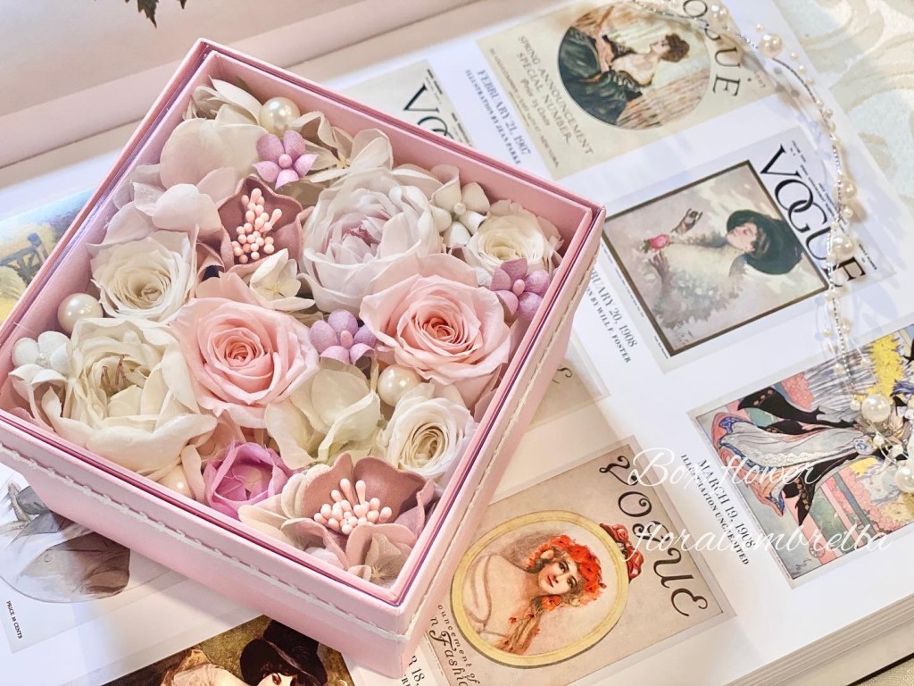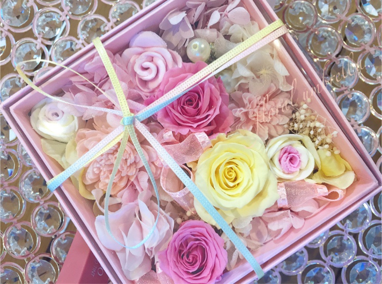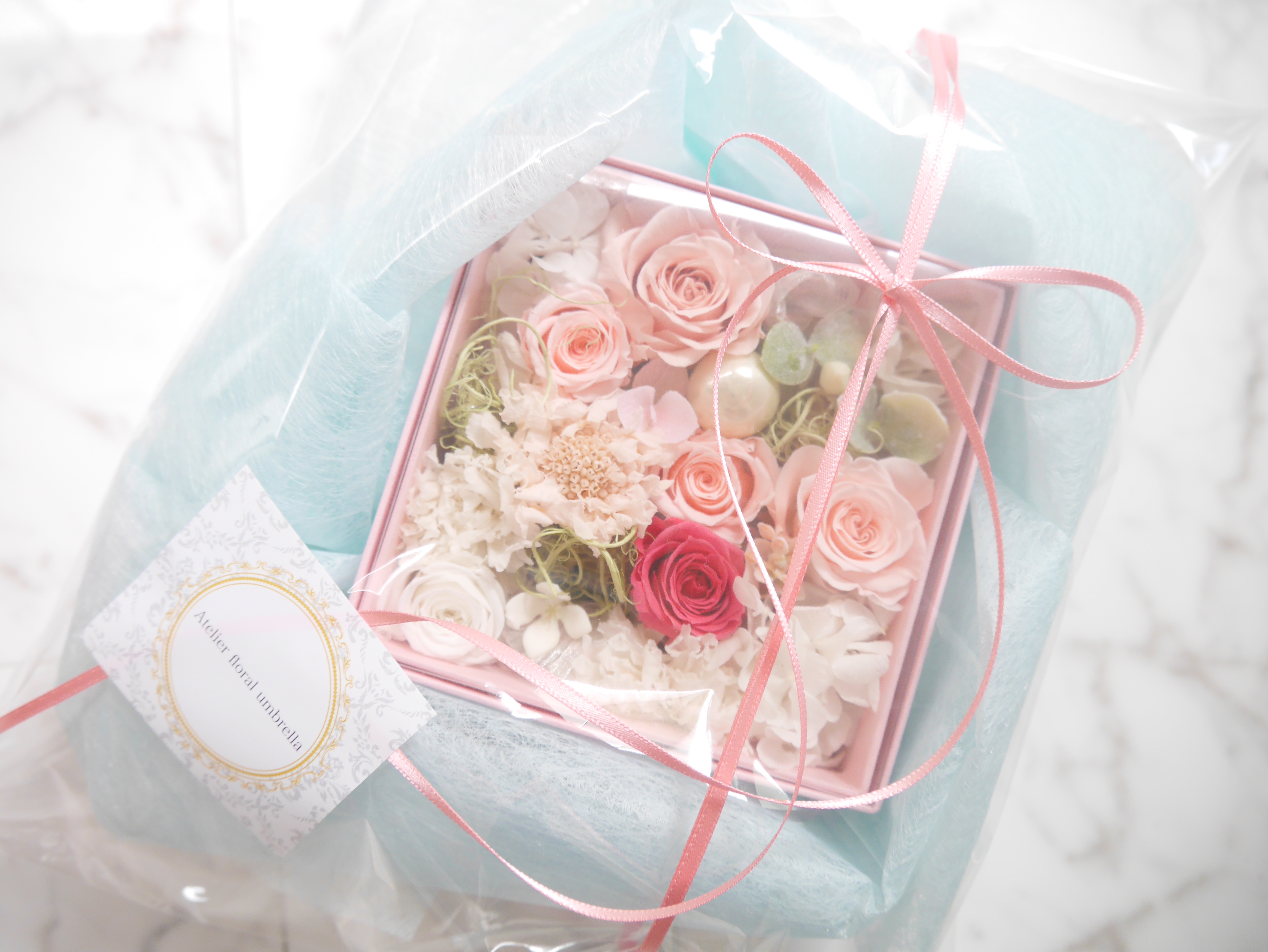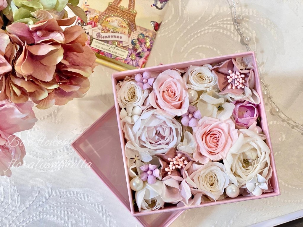 プリザーブドフラワーで作ったボックスフラワーは、贈り物にピッタリのアイテムです。