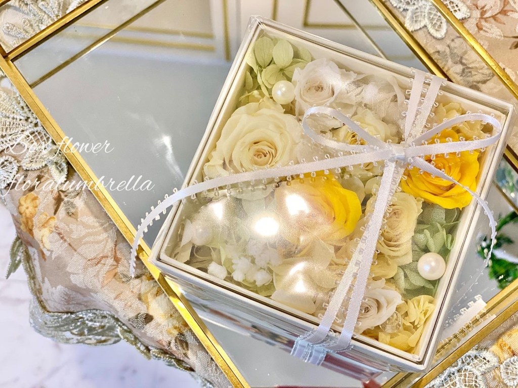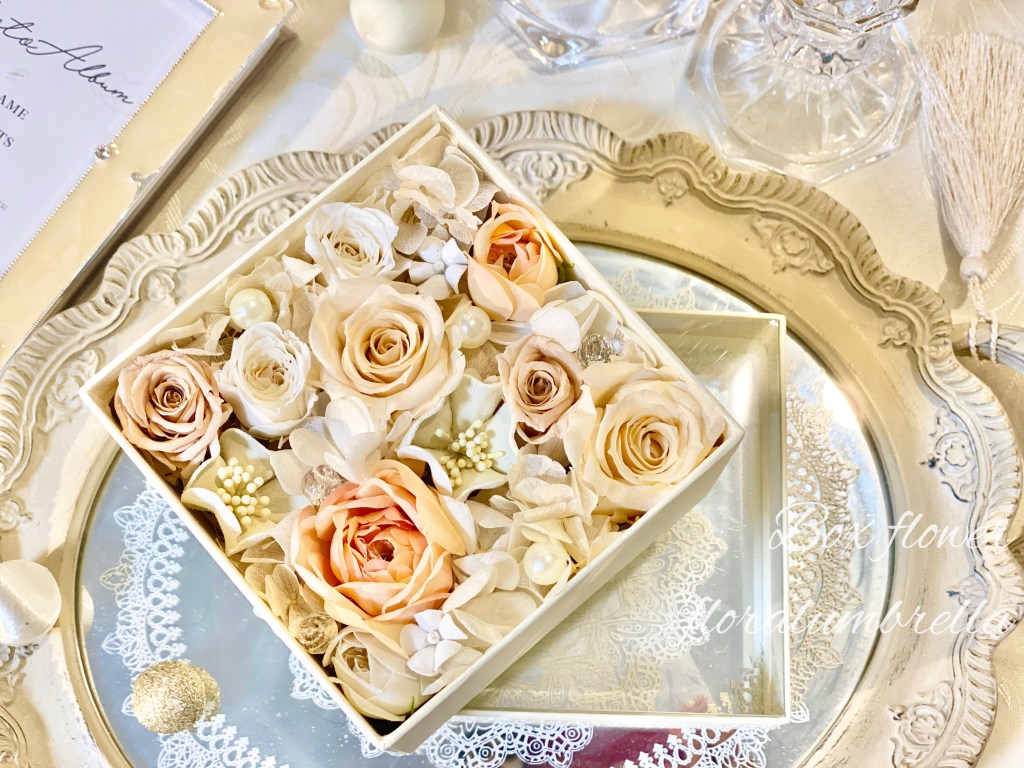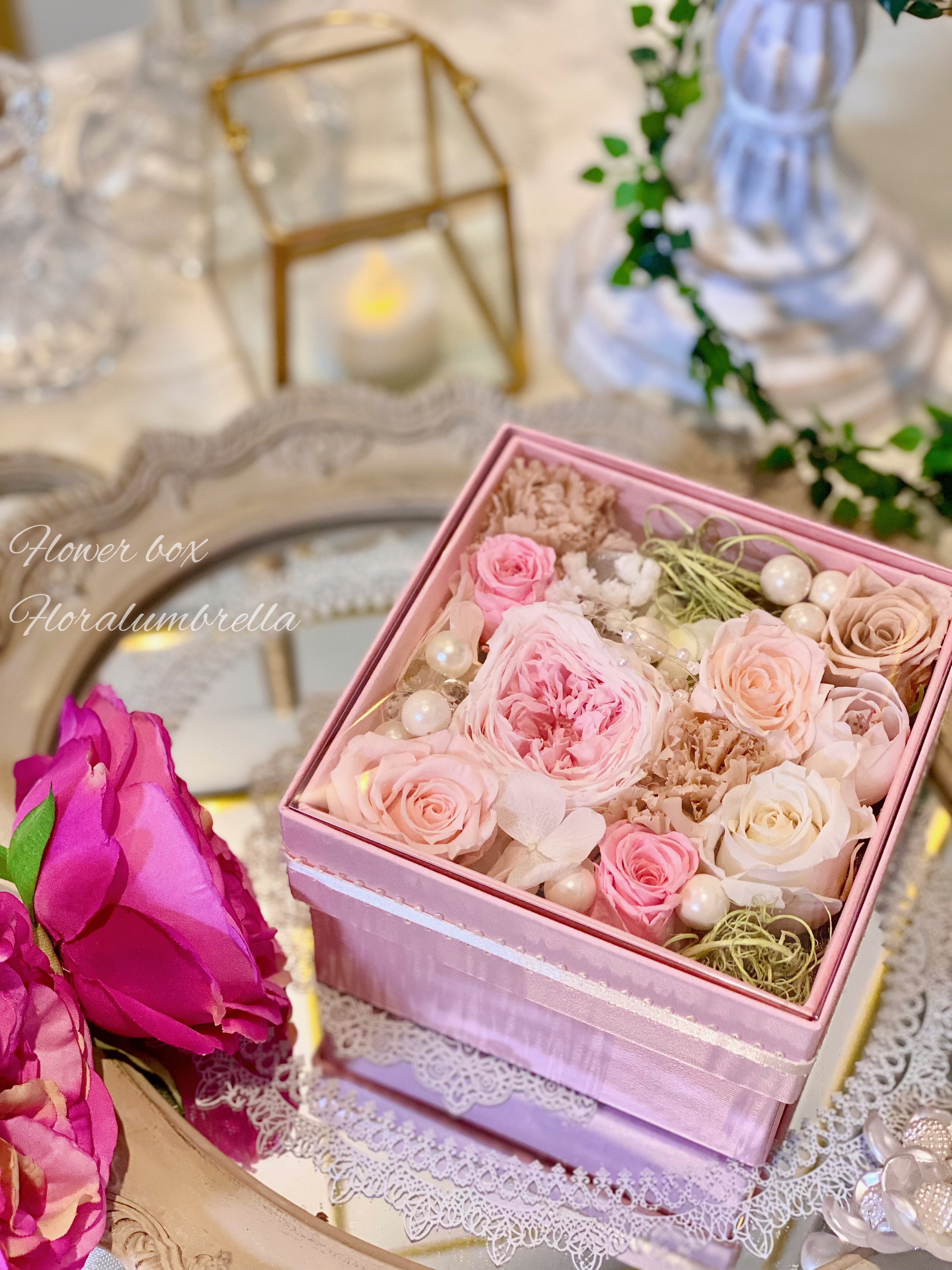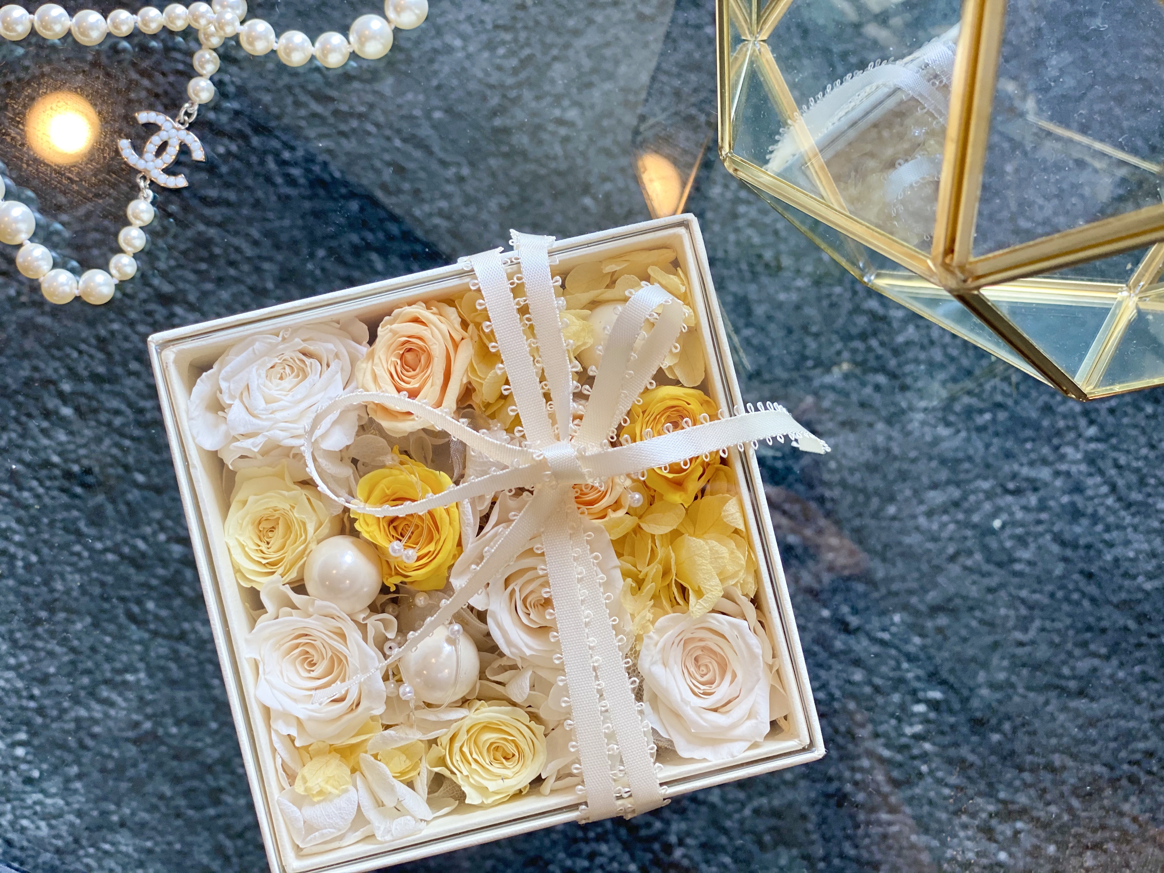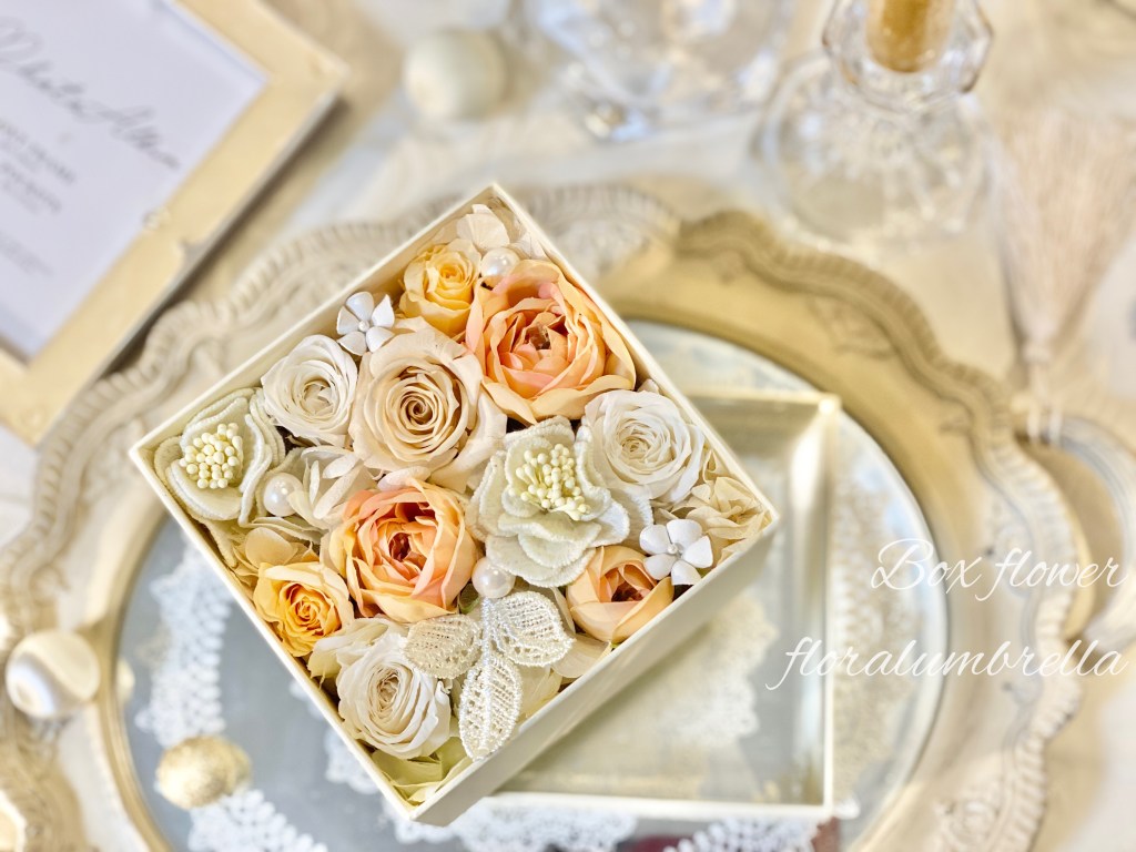 プリザーブドフラワーで作ったボックスフラワーは、贈り物にピッタリのアイテムです。
