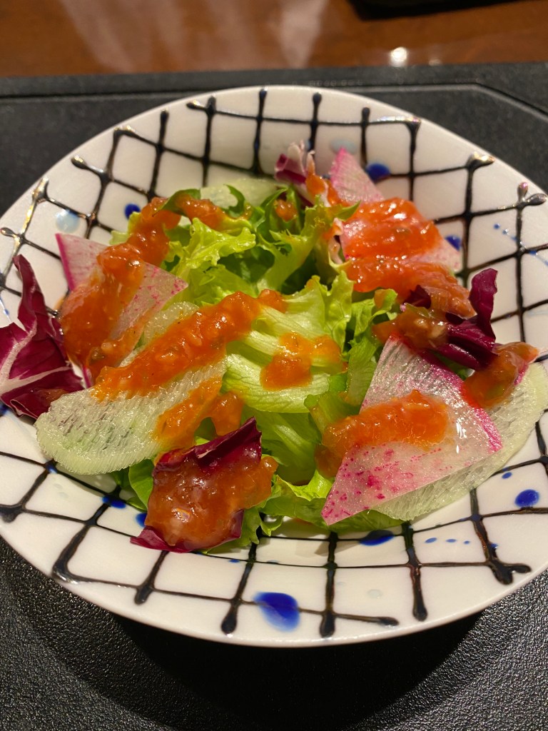 このサラダのドレッシングは、東京會舘の伝統的なものだそうで、とても美味しかったです。