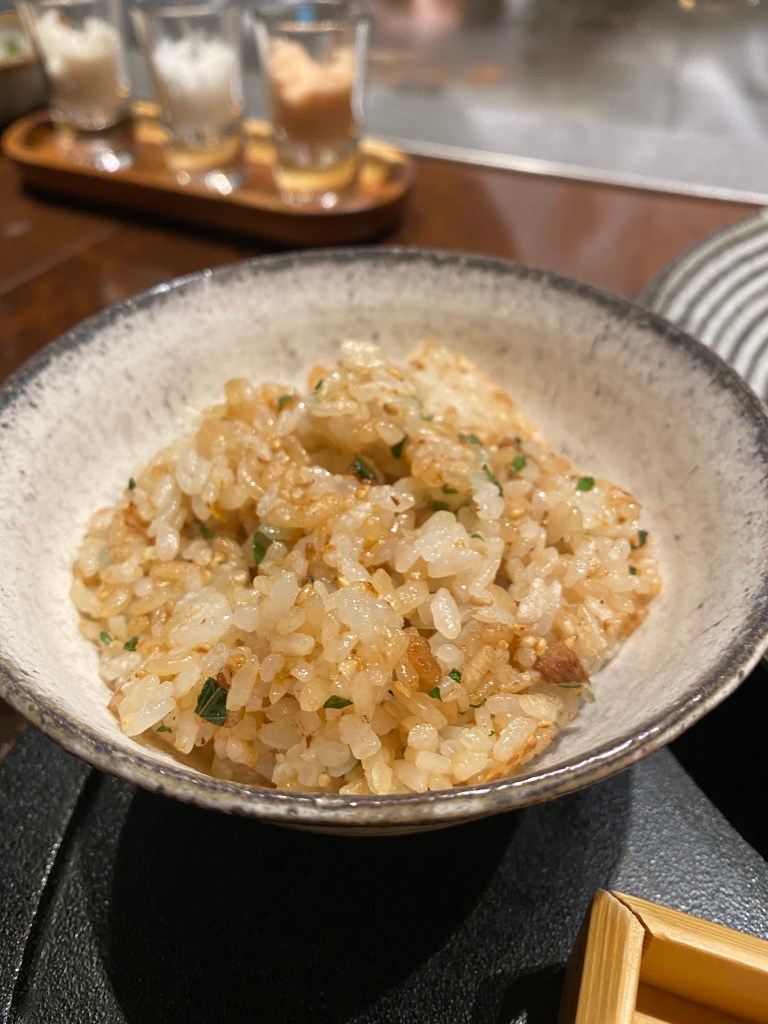 鉄板焼き屋さんで食べるガーリックライスが好きです。 白米とも選べるけど、もちろんガーリックライス。