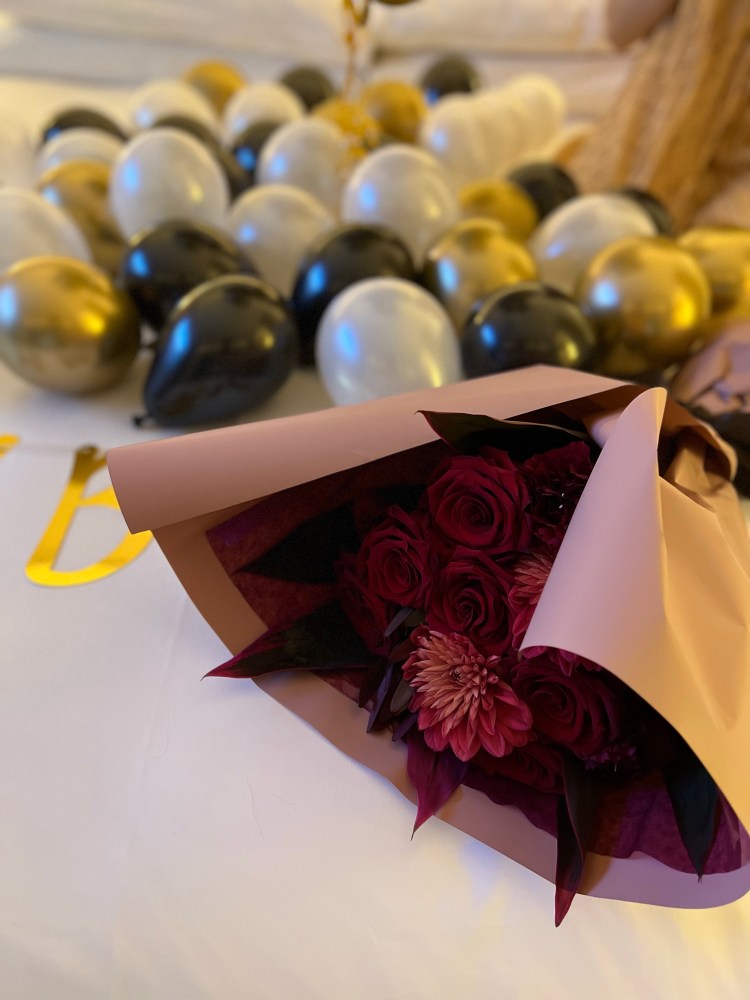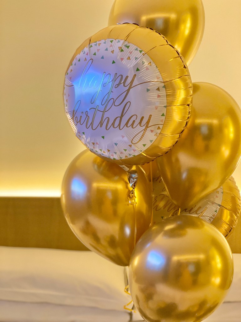 シャンパンゴールドな色合いがお部屋にも、たまたまこの日着ていた私の服にもマッチしていて沢山写真を撮ってしまいました。 夫に付き合って1年でしてもらったお誕生日のバルーンの飾りつけを思い出しました。 その時もすごく驚いたし嬉しかったです。 こうやってお祝いを続けてくれることが嬉しいな。