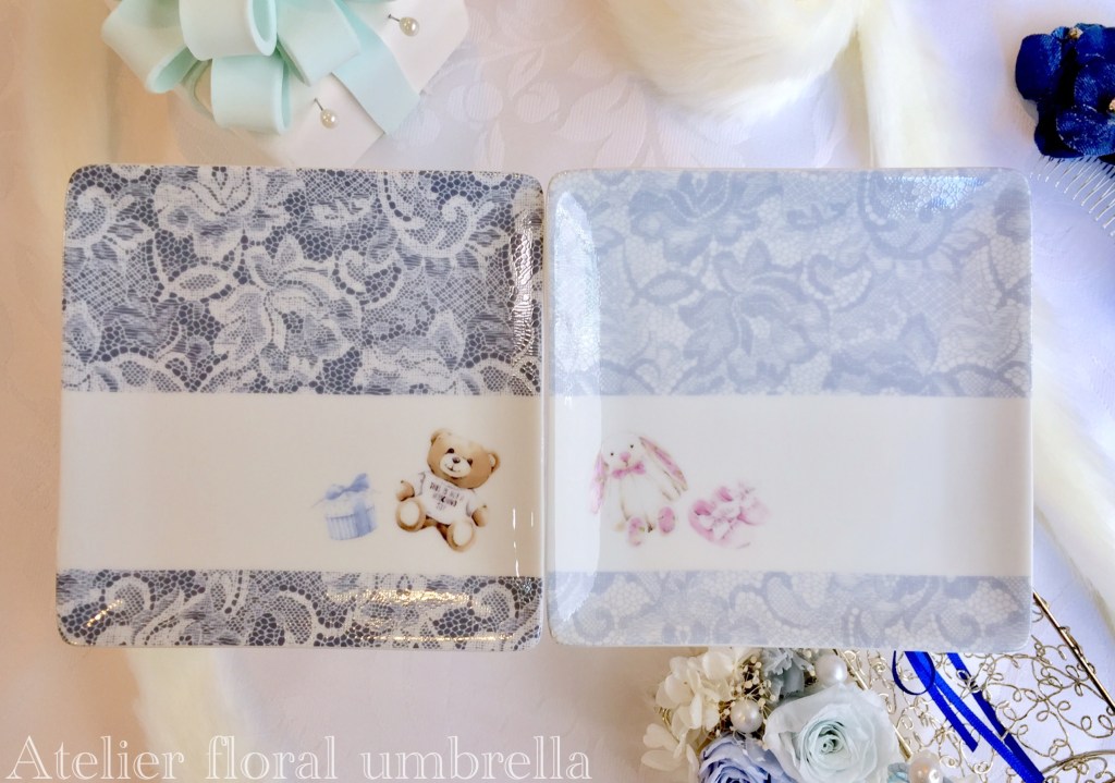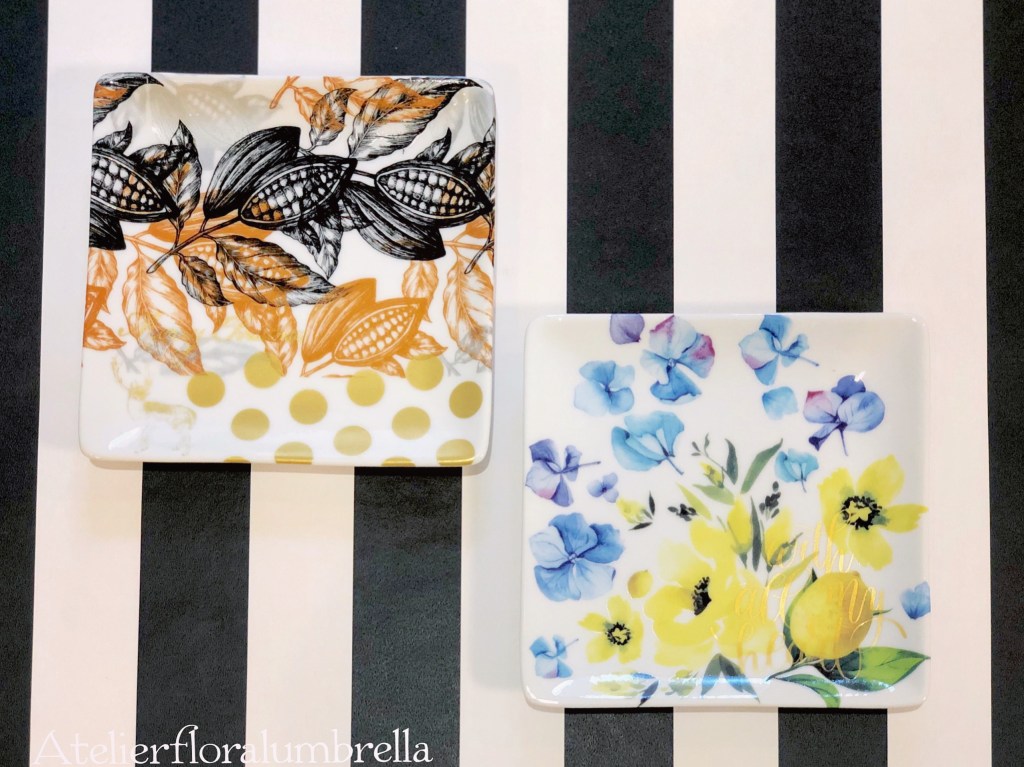 ポーセラーツの体験レッスンでは、ペアマグカップや小物入れ、カップ&ソーサーなどの他に、ペアスクエアプレートをお選びいただくことも出来ます♡ 今回は、今までにレッスンで生徒さんが作られたスクエアプレートの写真を集めてみました。