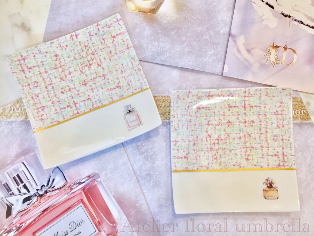 Barbieちゃん転写紙♡ ケーキ皿として使ってもいいけど、ファッションテイストの転写紙の場合は、アクセサリートレイにしても良いですね。