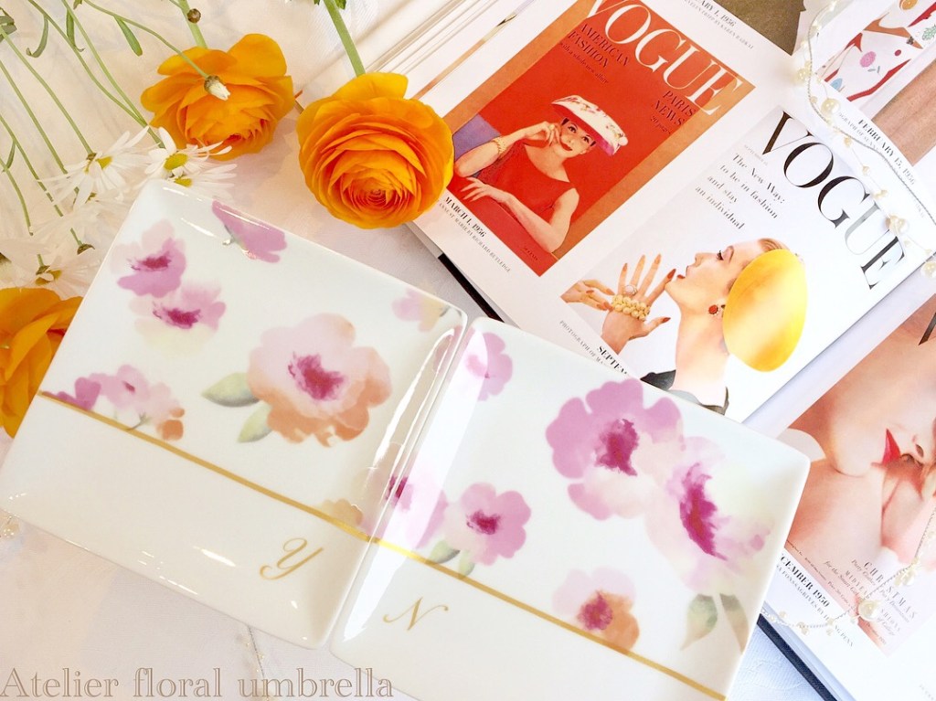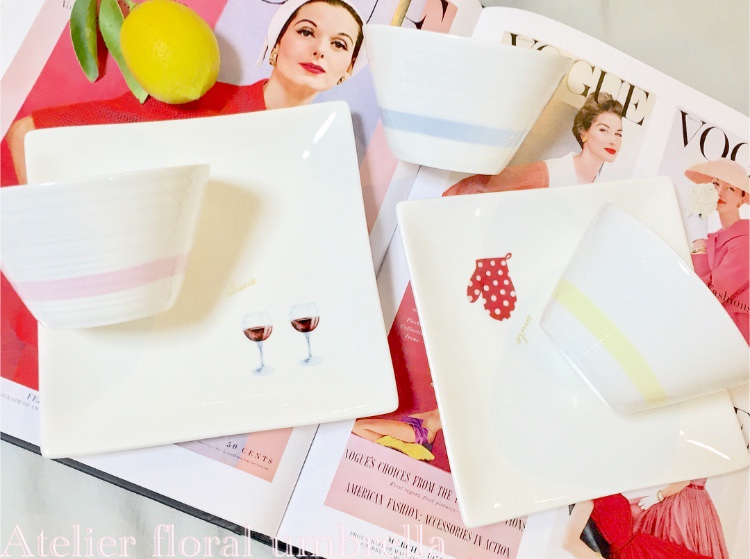 体験レッスンではスクエアプレートを作って、次のレッスンでお揃いのマグカップやカトラリーをセットで作る方もいらっしゃいます。 このボタニカルな転写紙も大人気です♩